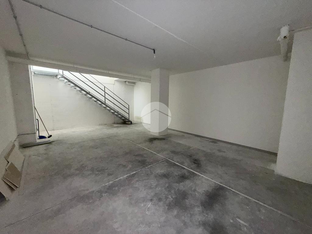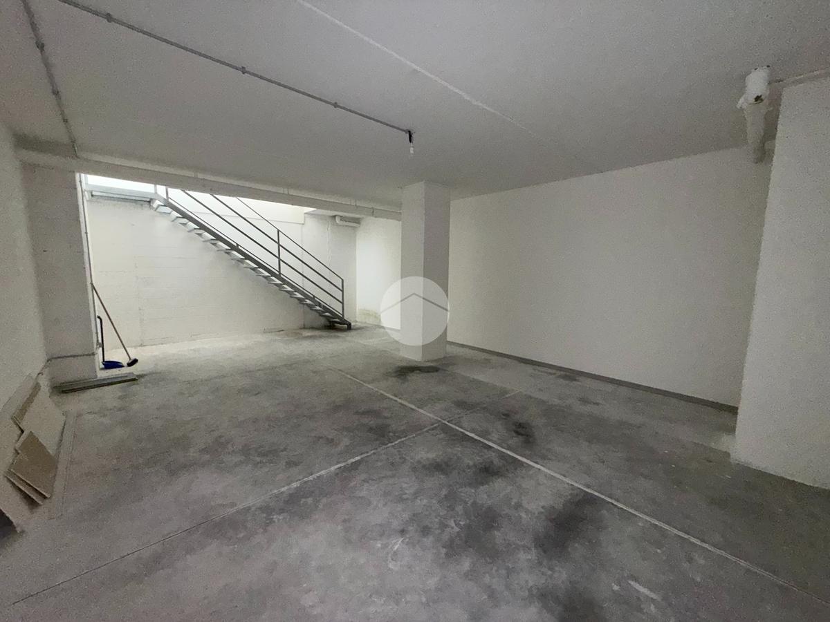 Il piano interrato, collegato internamente, offre ulteriori 60 mq ideali come magazzino, archivio, deposito o area operativa di supporto all’attività principale.